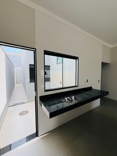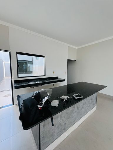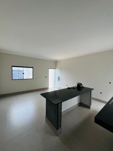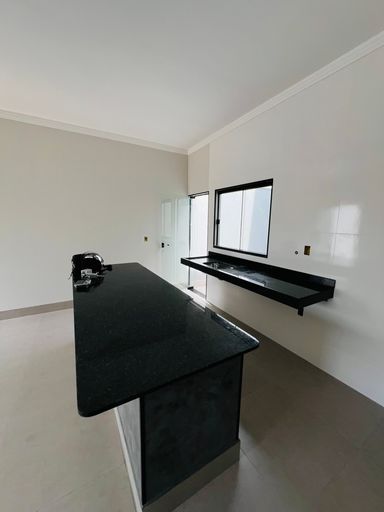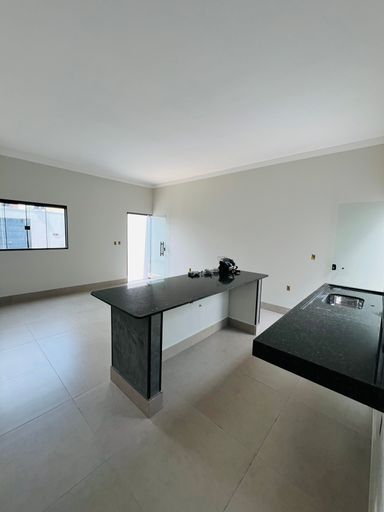 Cozinha moderna com bancadas em granito e espaço para planejados;